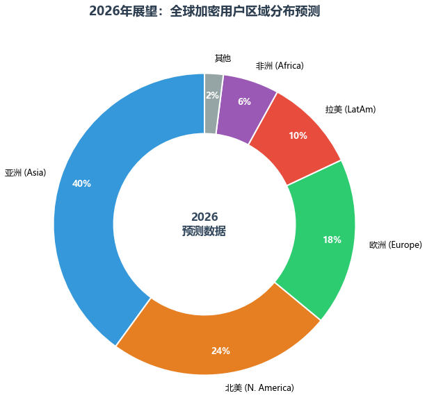 到 2026 年底,我们预计全球活跃加密用户分布将呈现明显的“功能性分化”:
