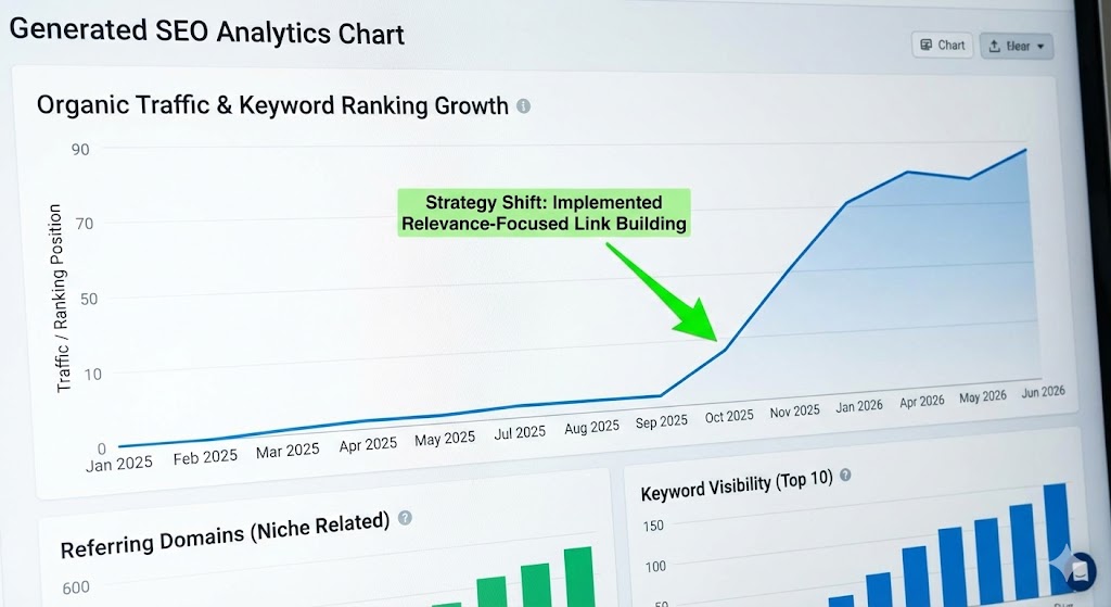 数据显示,在切换到“相关性优先”的外链策略后,网站流量与排名迎来了显著拐点。这就是精准打击与盲目轰炸的区别。