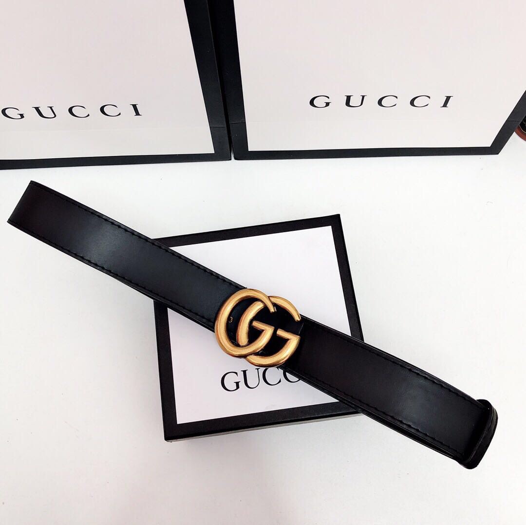 在Black Imprime腰带的“ double G”搭扣上寻找金属质感。在此皮带上,带扣由规则的G和上下颠倒的G组成。正常的G具有哑光的表面,而上下颠倒的G应该具有金属的黑色表面。皮带的内部应该是绒面革材料。“ double G”徽标应完美地印在整个皮带上。