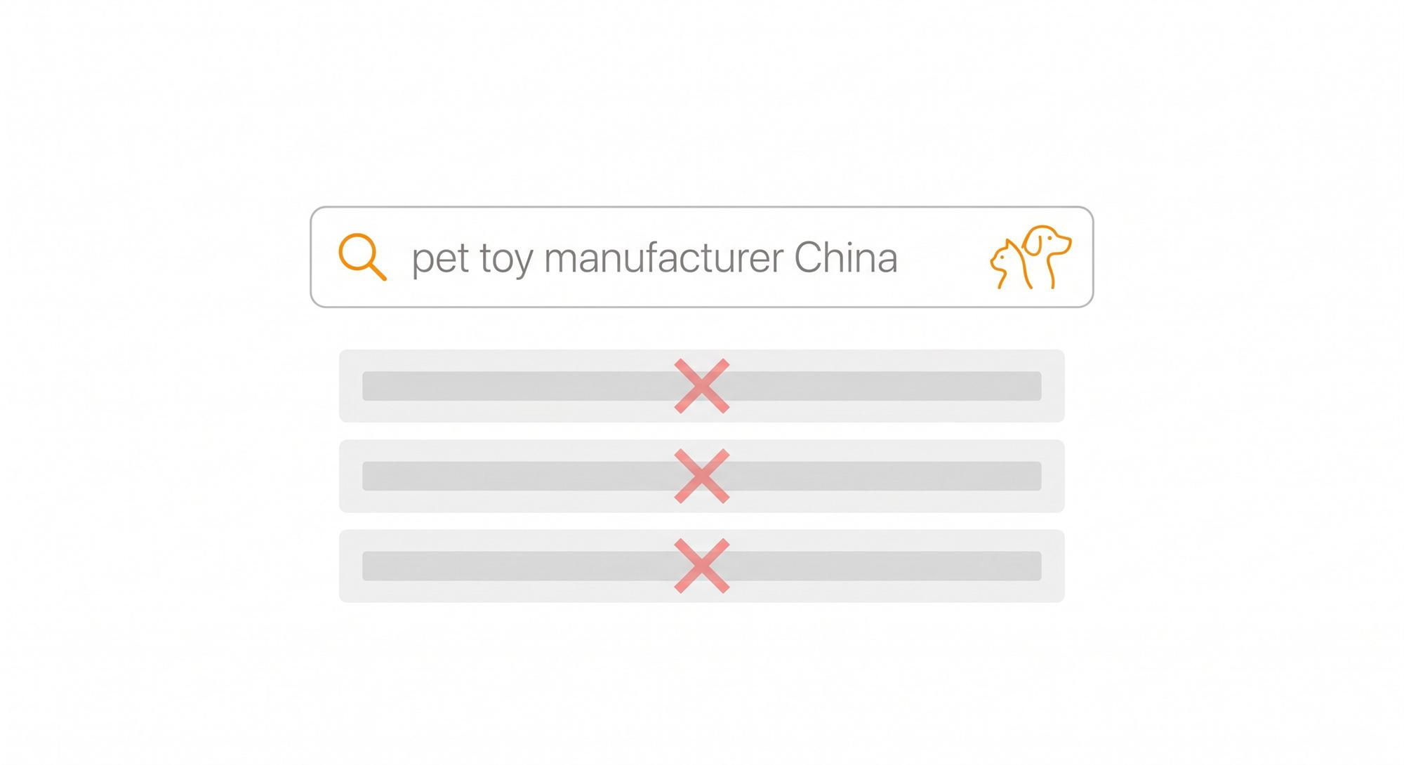 随便选几个关键词测试一下。打开谷歌,搜"pet toy manufacturer China",前两页的结果是什么?阿里巴巴的列表页占了好几条,Made-in-China占一两条,几个行业目录网站,然后是少数做了独立站SEO的企业。绝大多数中国宠物用品出口企业,在这些搜索结果中完全看不到。
